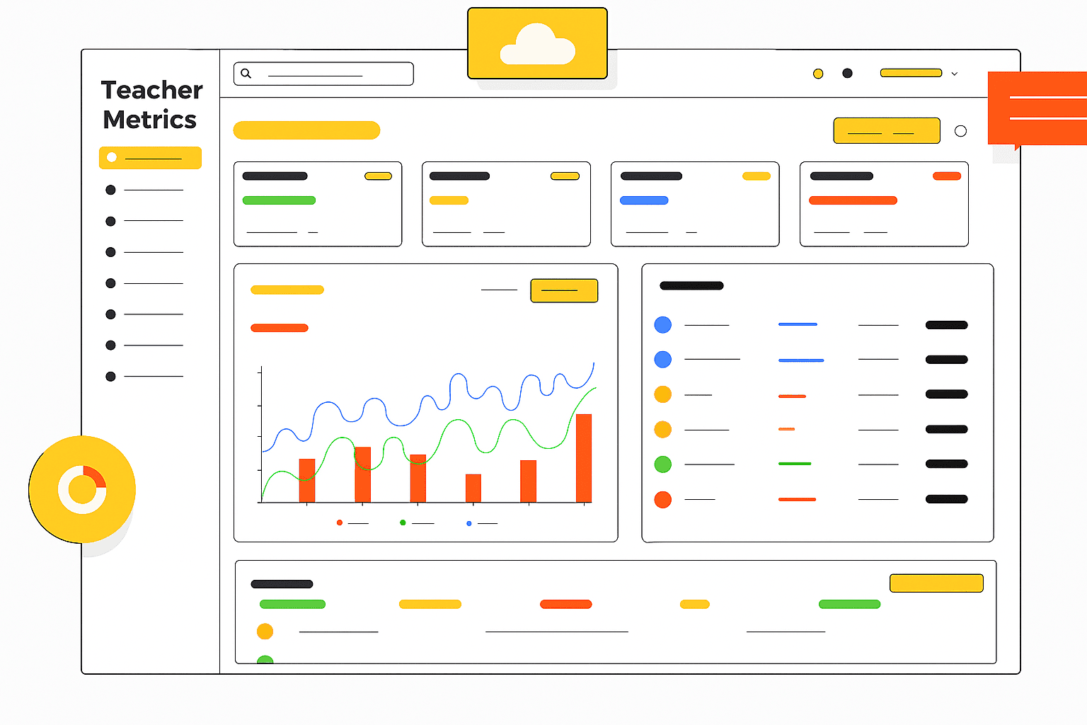 Principals can view live dashboards, track lesson progress, and measure productivity with just a glance.
