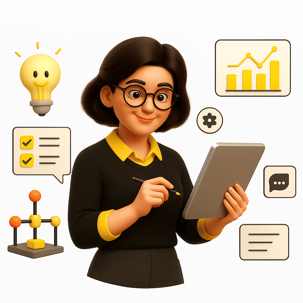 - Digital productivity tools (Scheduling App, AI-assisted presentation, Lesson plan articulation, Dashboard tracking)